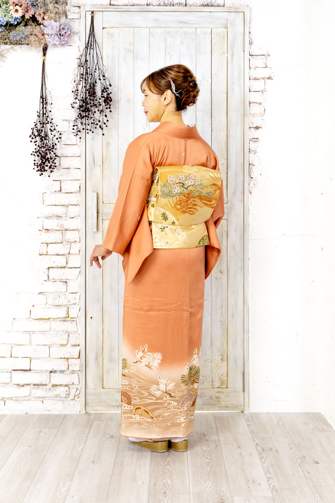 色留袖 珊瑚色 片輪車